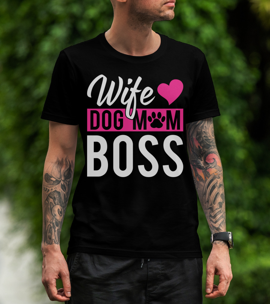 Wife Dog Mom Boss With Heart And Paw Prints T-Shirt