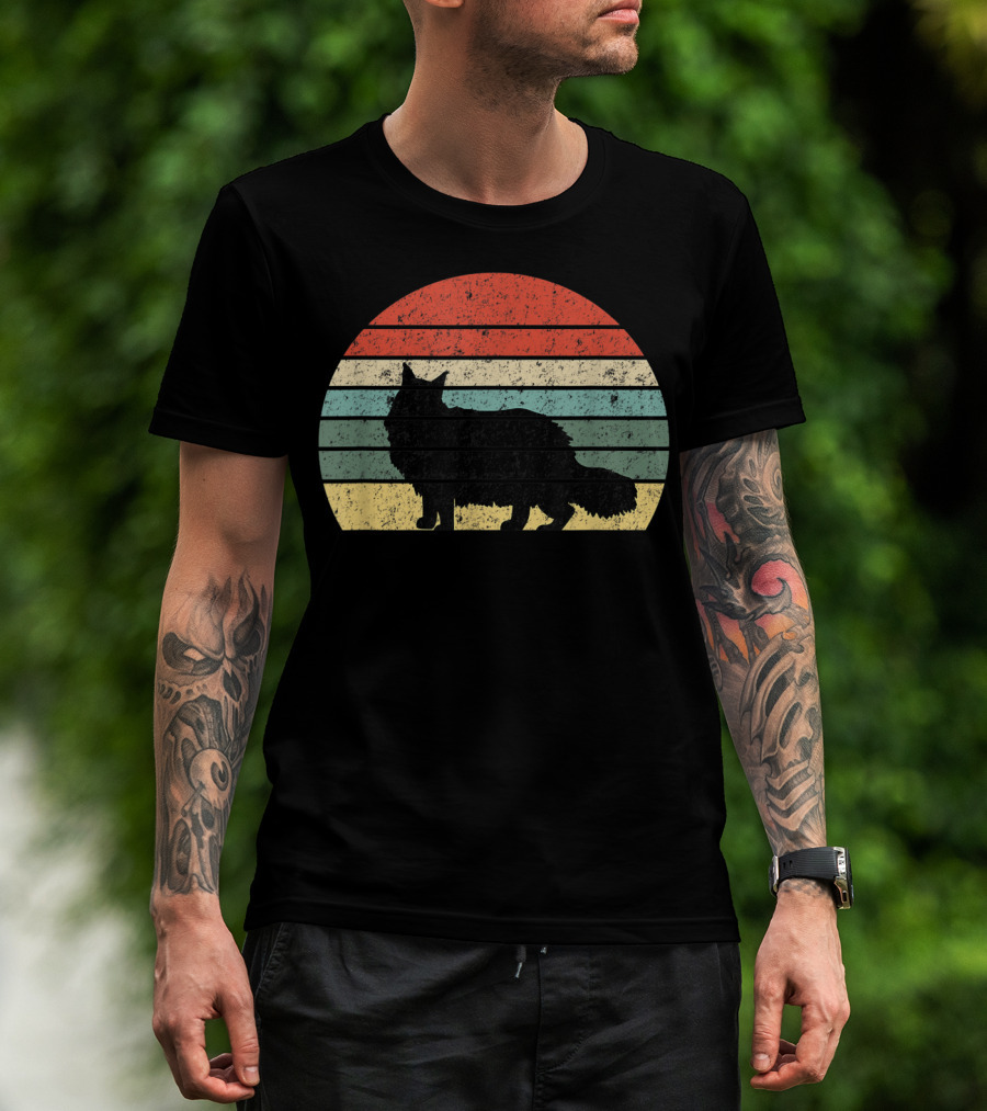 The Retro Sunset Silhouette Maine Coon Cat Lover T-shirt is designed for everyday wear and a consistent fit. Fabric is pre-shrunk ring-spun cotton with durable stitching. See the size chart below for exact measurements.