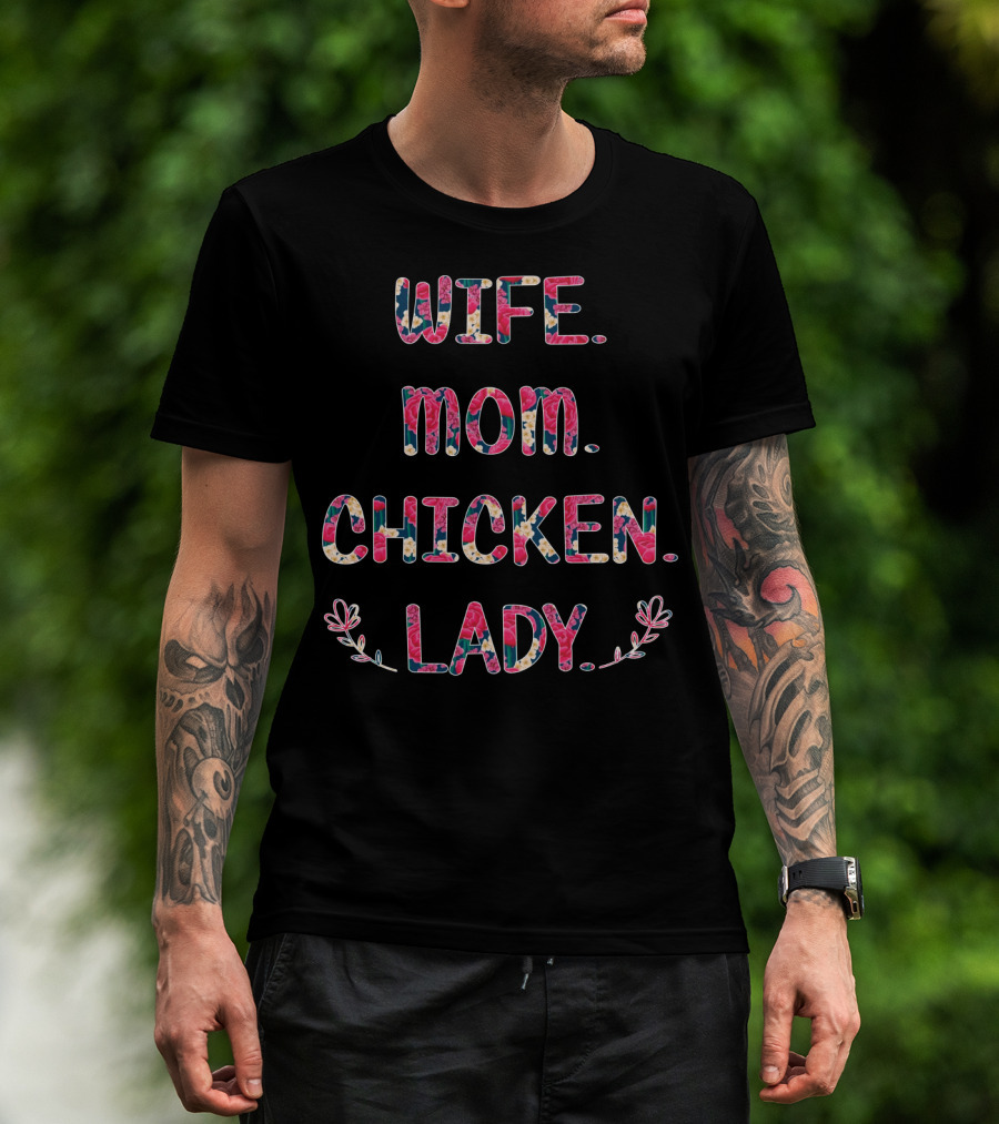 WIFE MOM CHICKEN LADY Floral Pattern Fun T-Shirt