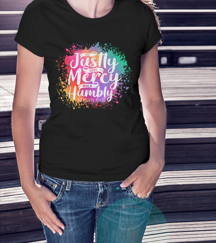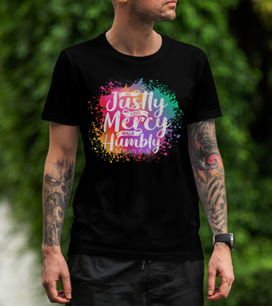 Christian Do Justly Love Mercy Walk Humbly Micah 6:8 Colorful Splatter T-Shirt