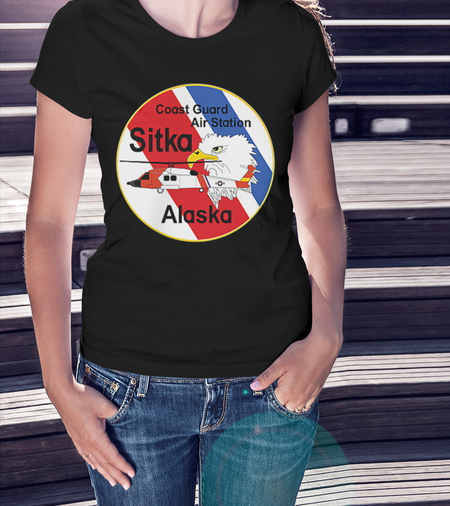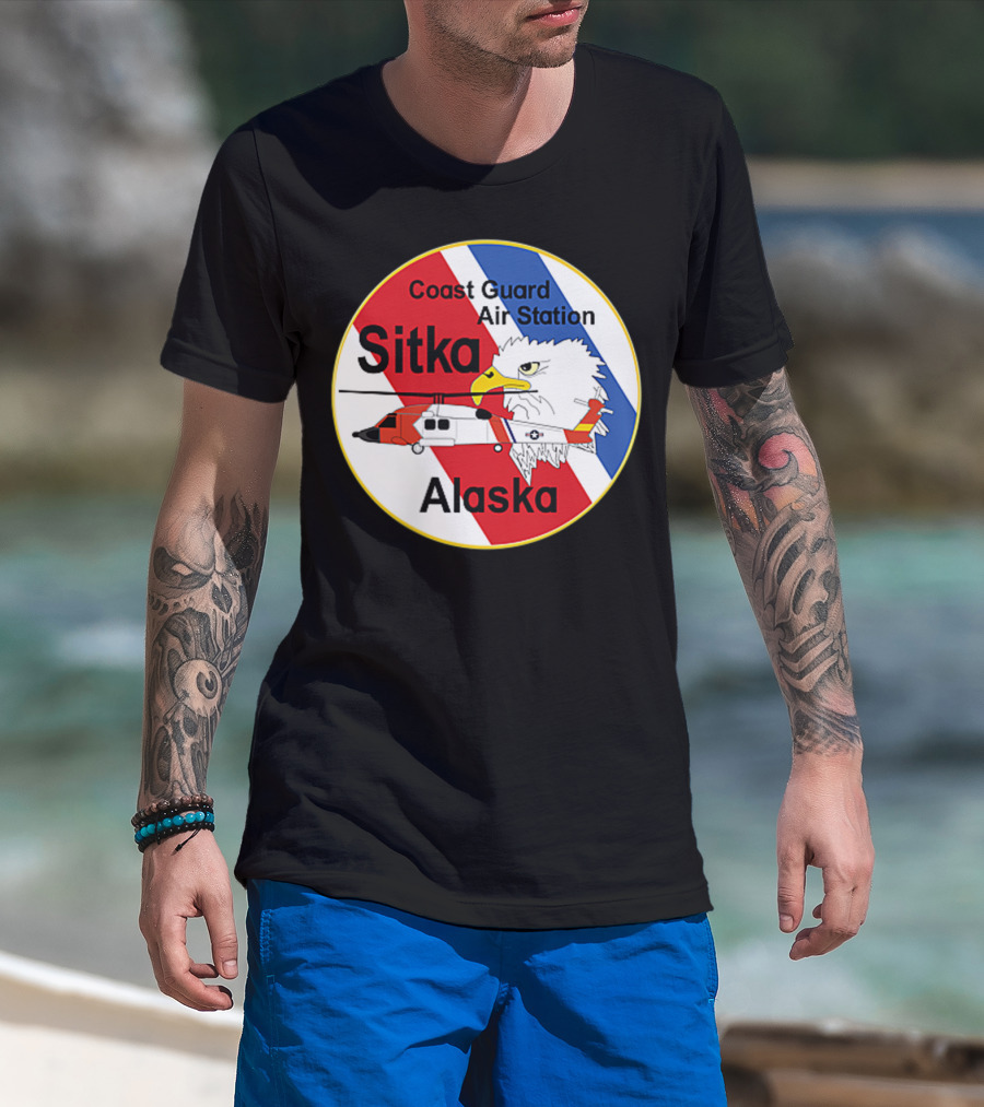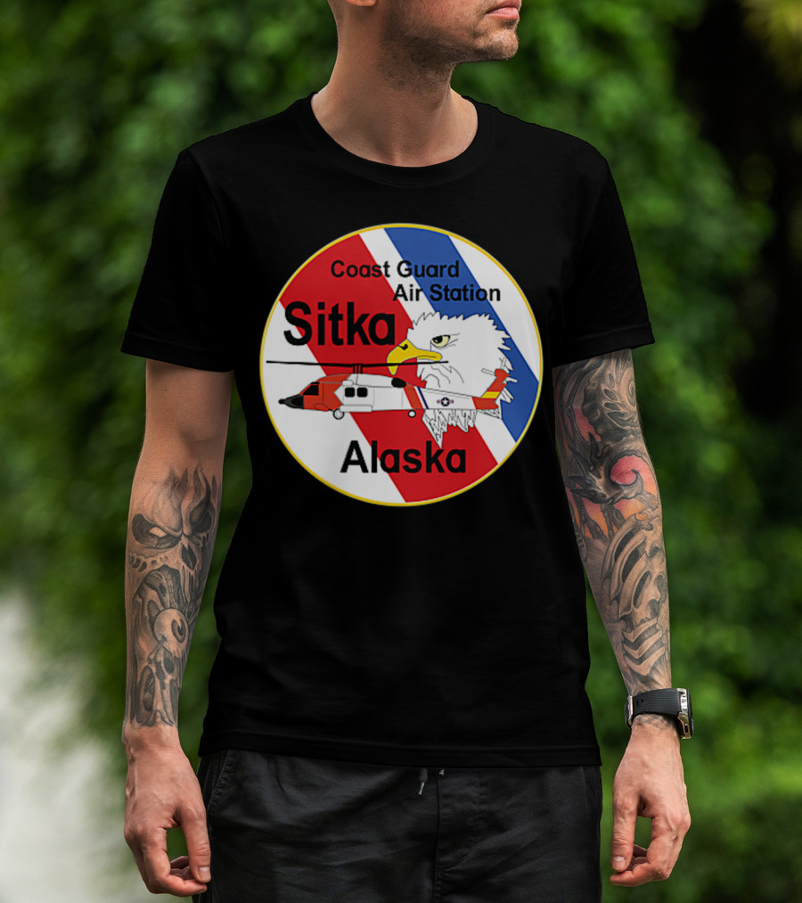 Coast Guard Air Station Sitka Alaska Eagle Helicopter Badge T-Shirt
