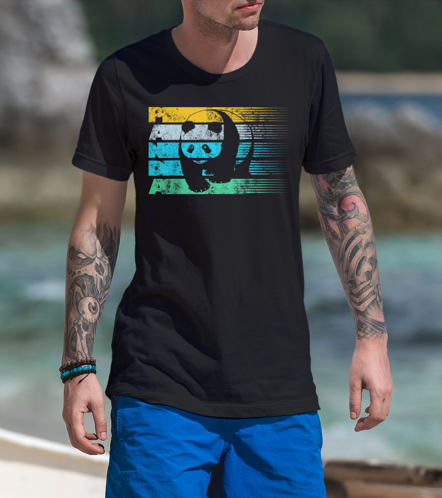 Panda Retro Vintage Stripes Cool Panda Bear T-Shirt