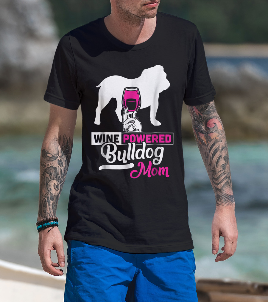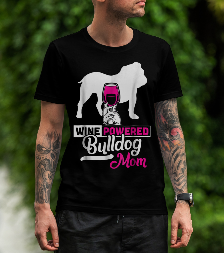Wine Powered Bulldog Mom T-Shirt