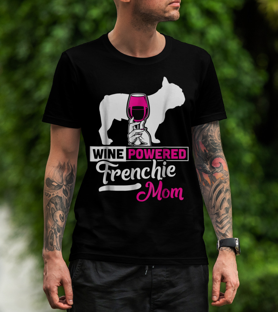 The Wine Powered Frenchie Mom T-shirt is designed for everyday wear and a consistent fit. Fabric is pre-shrunk ring-spun cotton with durable stitching. See the size chart below for exact measurements.