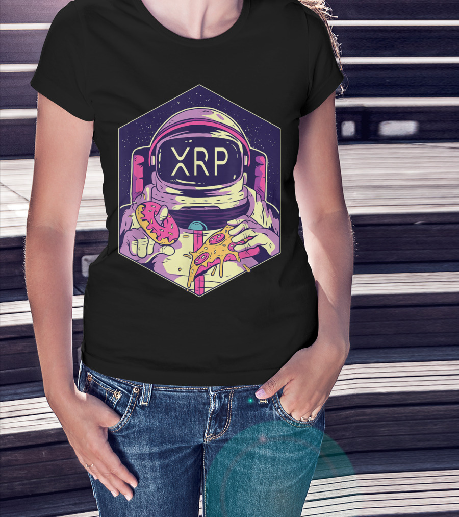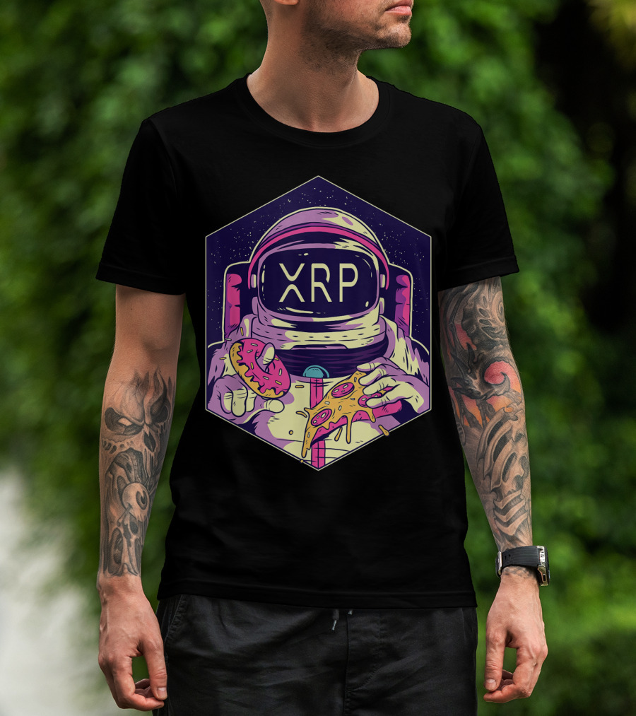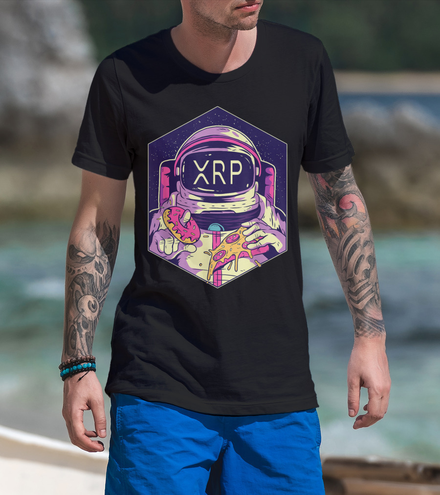XRP Symbol Astronaut Eating Pizza And Donut Crypto Currency To The Moon T-Shirt