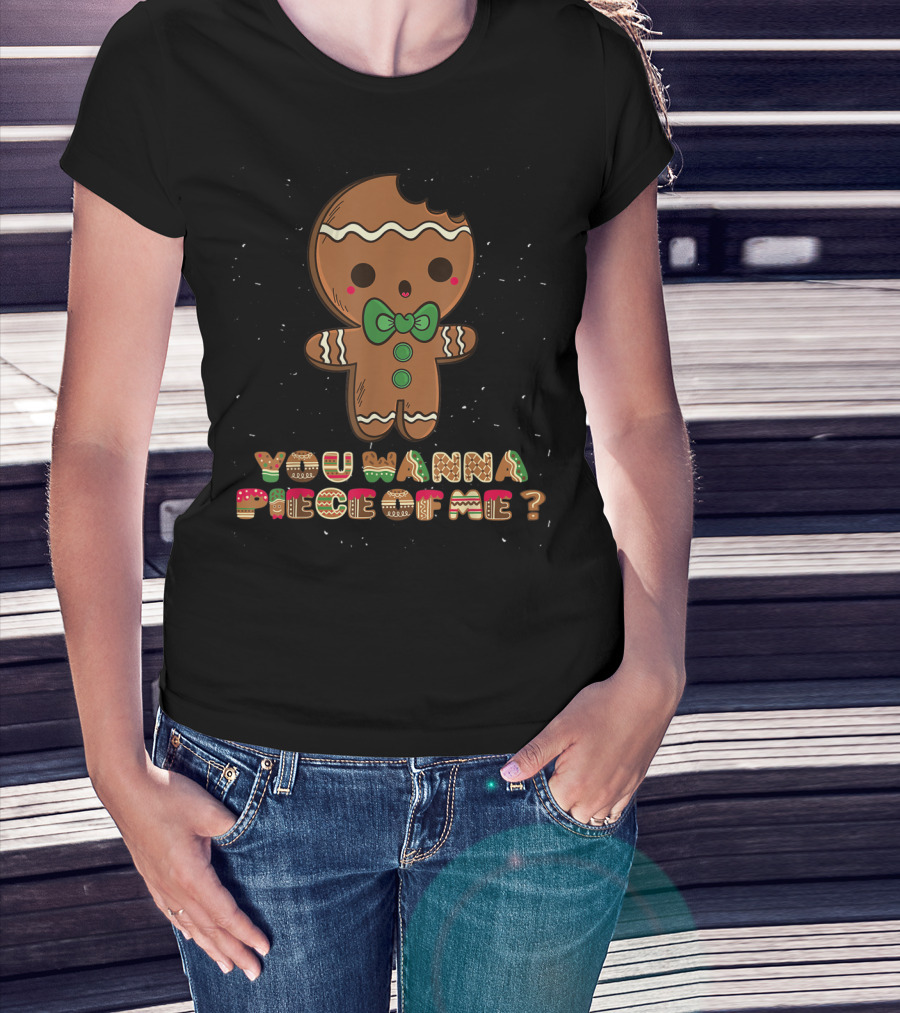 Gingerbread Man You Wanna Piece Of Me Bowtie Green Buttons T-Shirt
