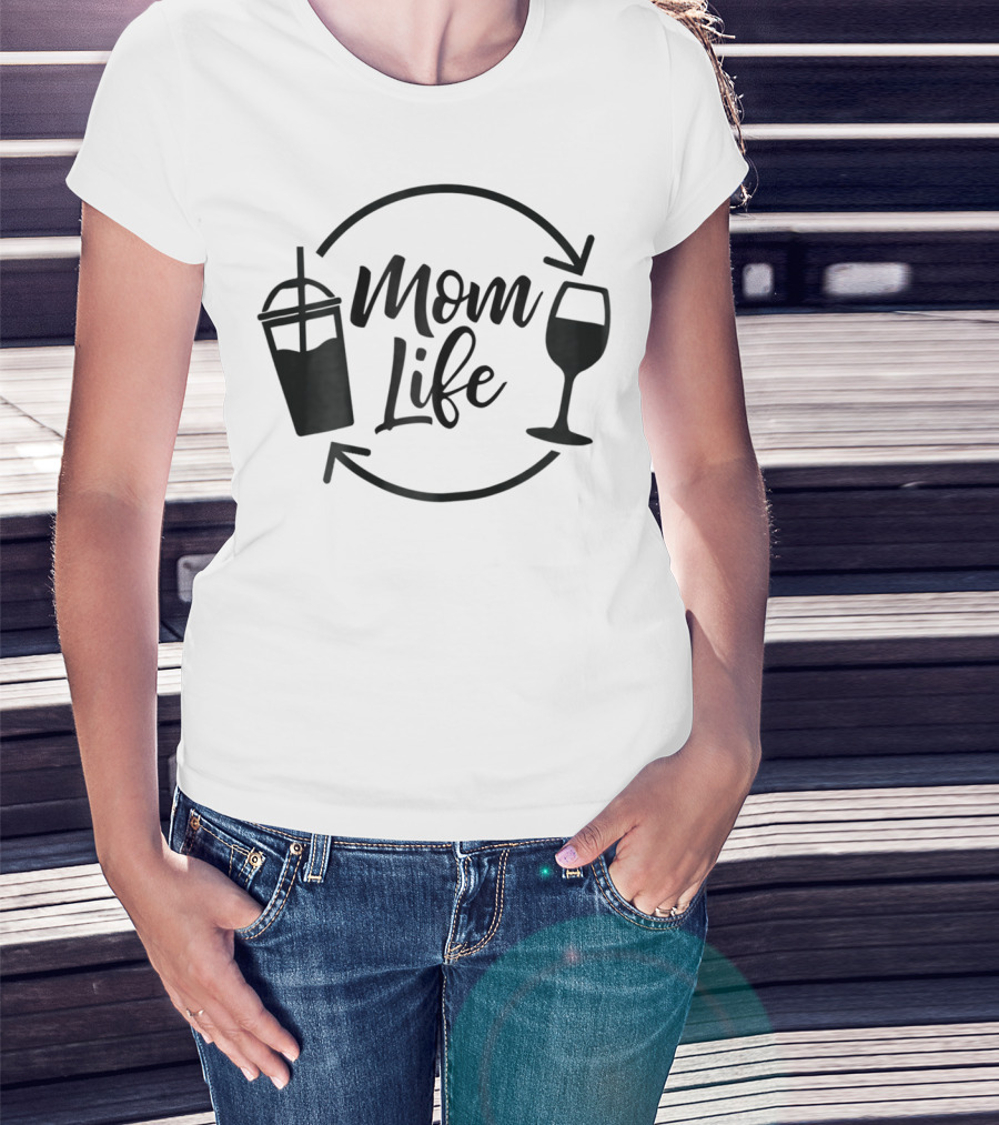 Mom Life Coffee Wine Funny MomLife T-Shirt