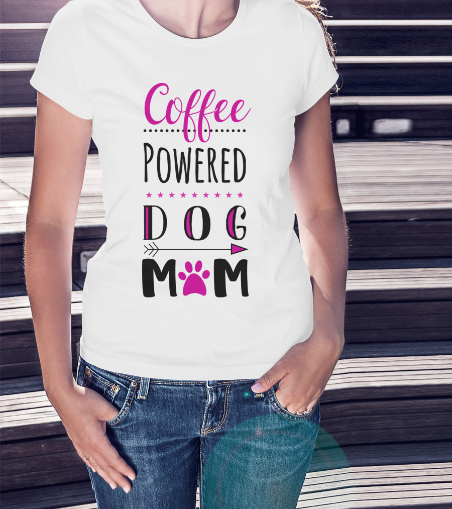 Coffee Powered Dog Mom Paw Print Arrow Stars T-Shirt