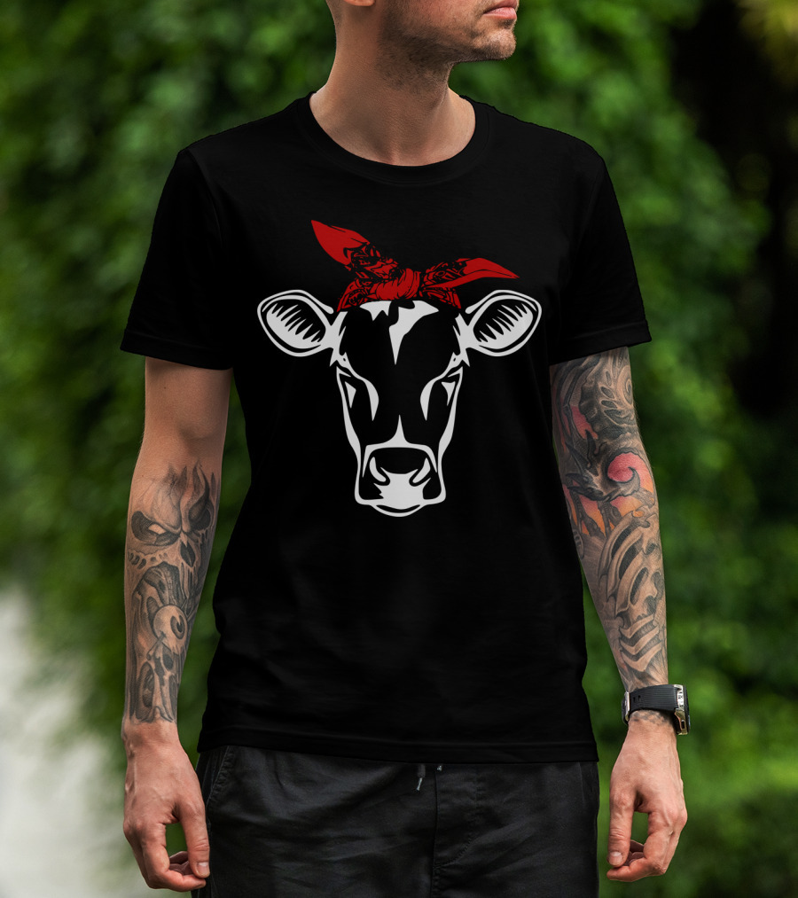 The Cow with Red Bandana Heifer Farm T-shirt is designed for everyday wear and a consistent fit. Fabric is pre-shrunk ring-spun cotton with durable stitching. See the size chart below for exact measurements.