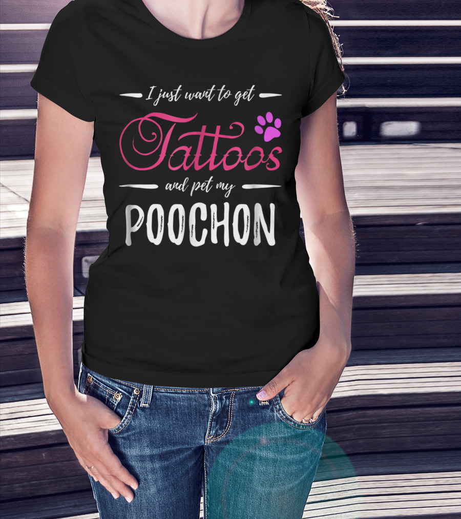 I Just Want To Get Tattoos And Pet My Poochon Dog Lover Tattoo Funny Dog Mom Idea20 T-Shirt