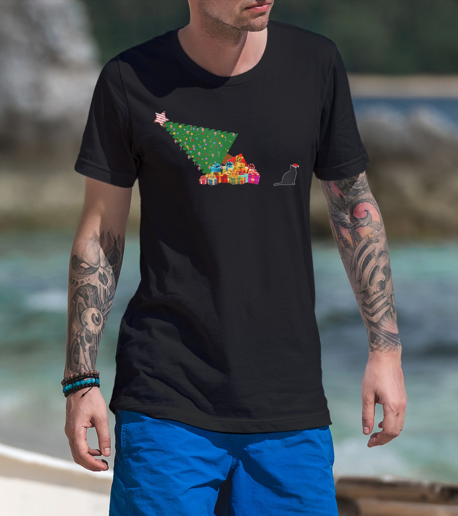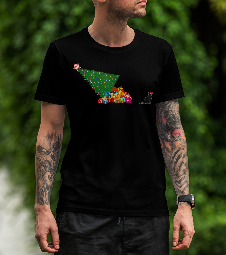 Funny Cat Topples Christmas Tree With Santa Hat T-Shirt