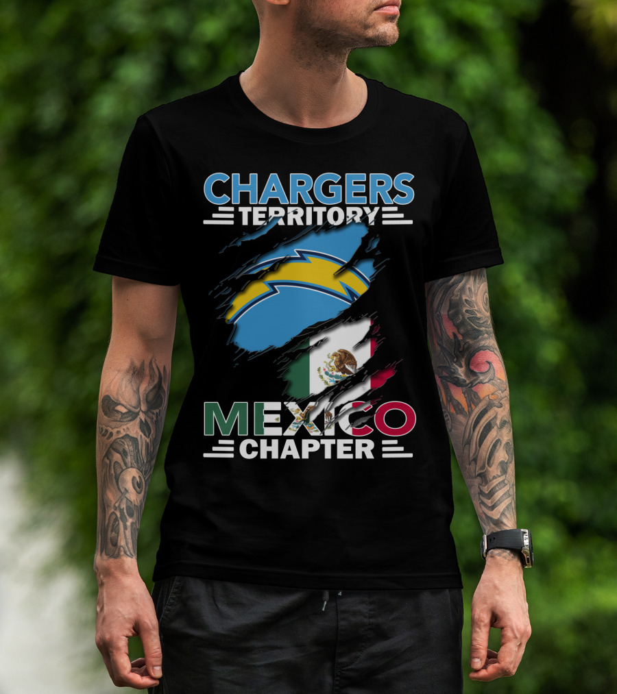 Chargers Territory Mexico Chapter Bold Lightning Logo And Flag Stripes T-Shirt