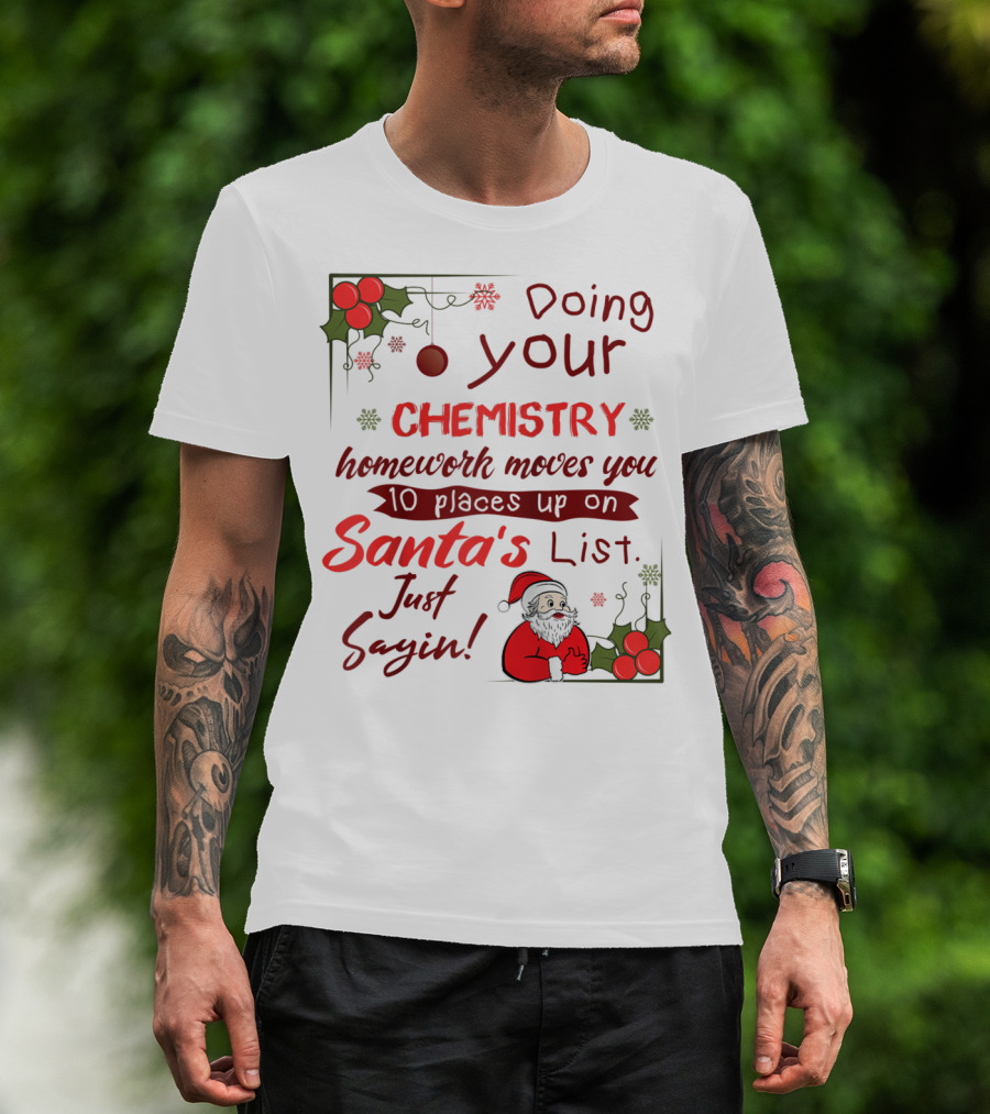 Doing Your Chemistry Homework Moves You 10 Places Up On Santa's List Just Sayin T-Shirt