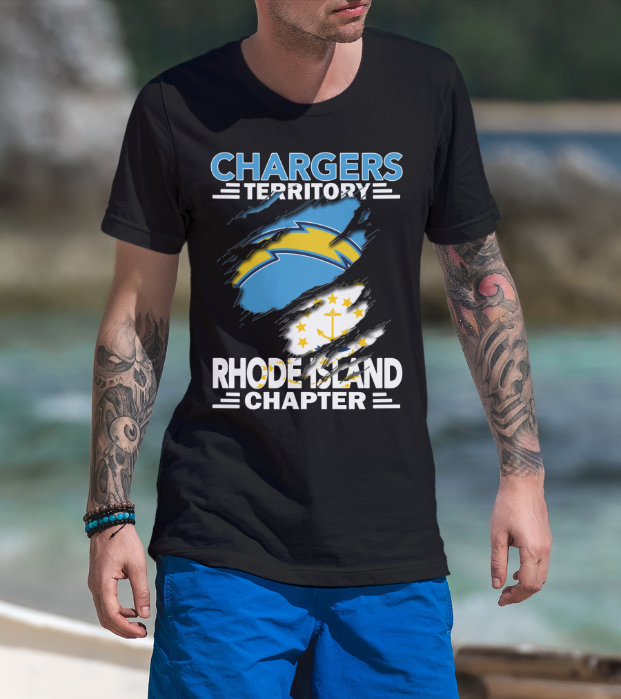 Chargers Territory Rhode Island Chapter Logo With Split Design Featuring Iconic Symbols T-Shirt
