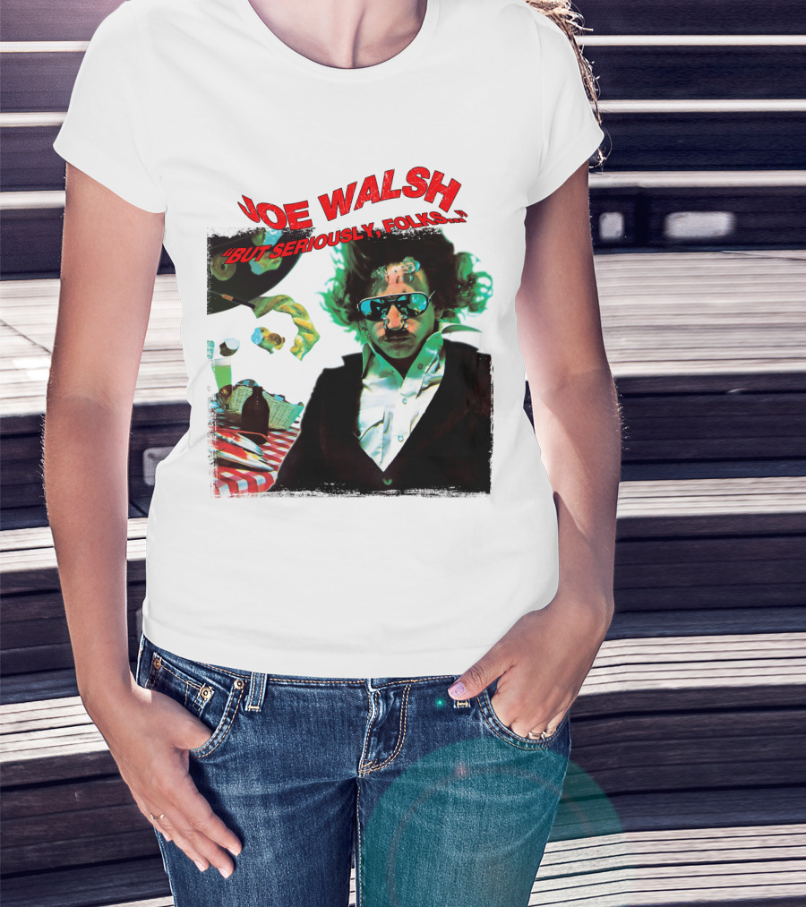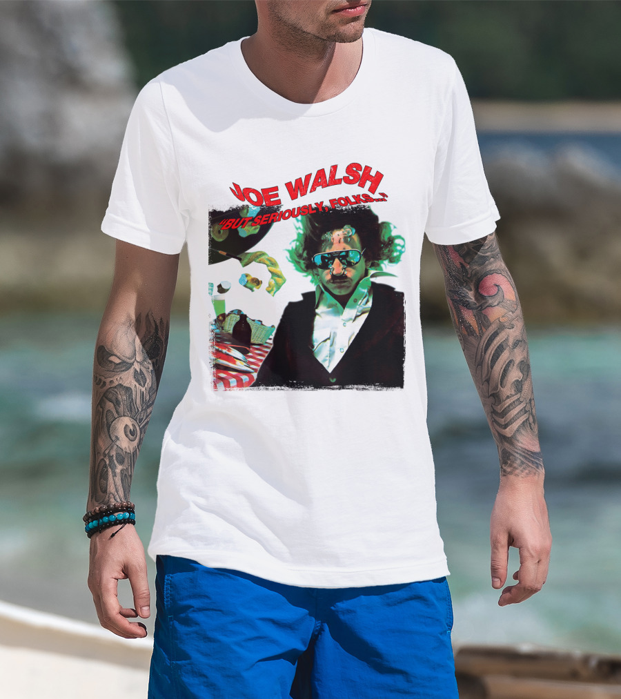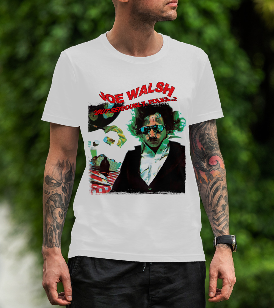 The Joe Walsh But Seriously Folks T-shirt is designed for everyday wear and a consistent fit. Fabric is pre-shrunk ring-spun cotton with durable stitching. See the size chart below for exact measurements.