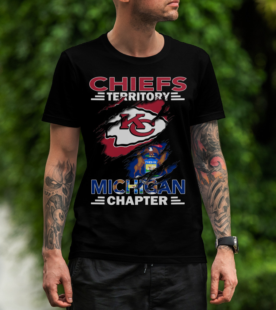 Chiefs Territory Michigan Chapter KC Logo With Michigan State Emblem T-Shirt