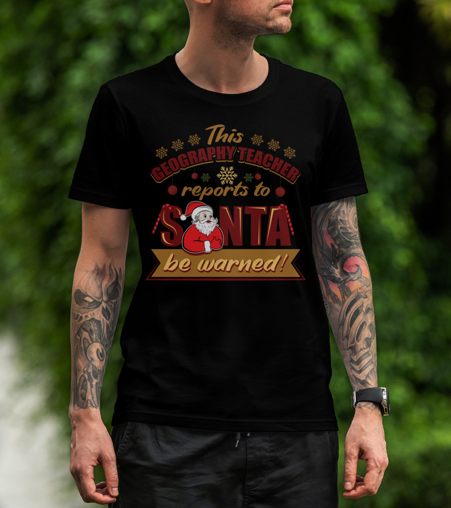 This Geography Teacher Reports To Santa Be Warned T-Shirt