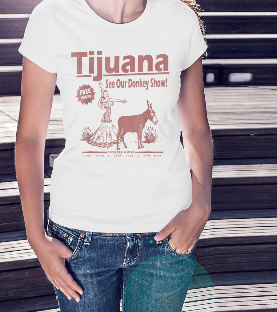 Tijuana See Our Donkey Show Free Popcorn Seven Days A Week T-Shirt