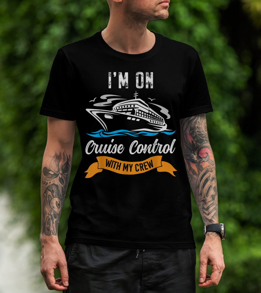 The I'm On Cruise Control With My Crew T-shirt is designed for everyday wear and a consistent fit. Fabric is pre-shrunk ring-spun cotton with durable stitching. See the size chart below for exact measurements.
