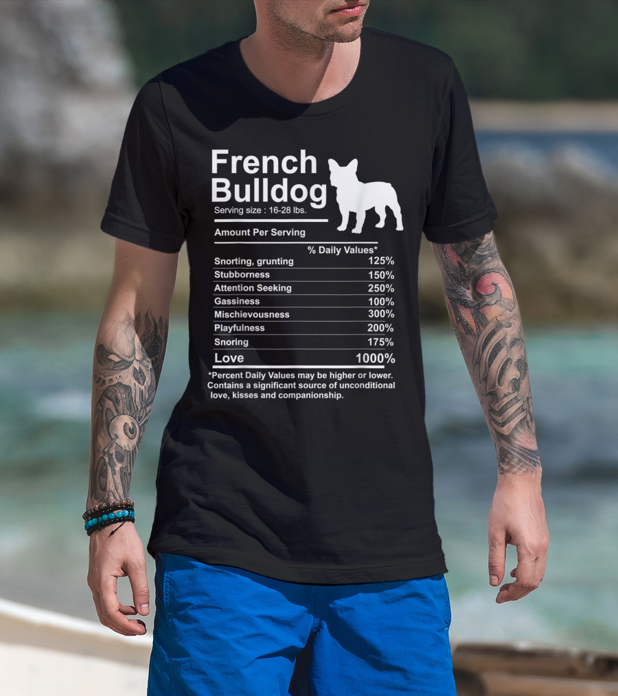 French Bulldog Nutrition Facts Love And Mischievousness T-Shirt