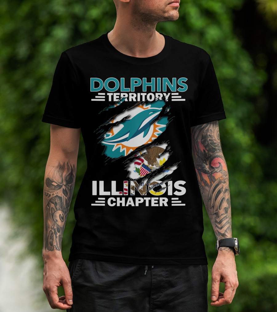 Dolphins Territory Illinois Chapter Miami Dolphins Logo And Illinois Flag T-Shirt
