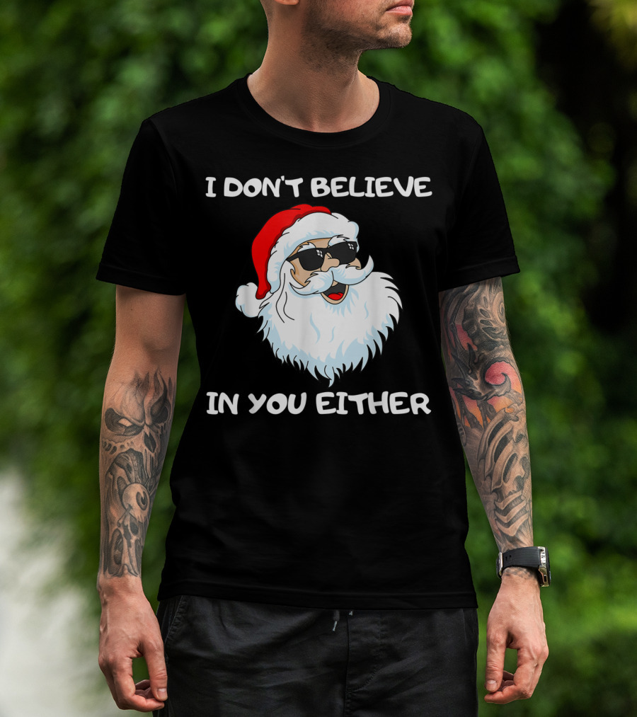 Funny Santa I Don't Believe In You Either Cool Santa Sunglasses T-Shirt