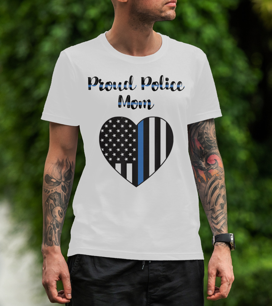 Proud Police Mom Heart Thin Blue Line T-Shirt