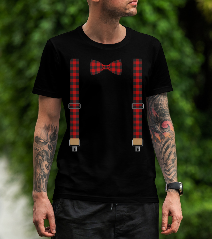 Christmas Buffalo Plaid Bow Tie And Suspenders T-Shirt