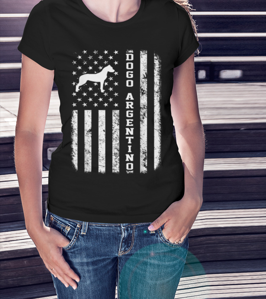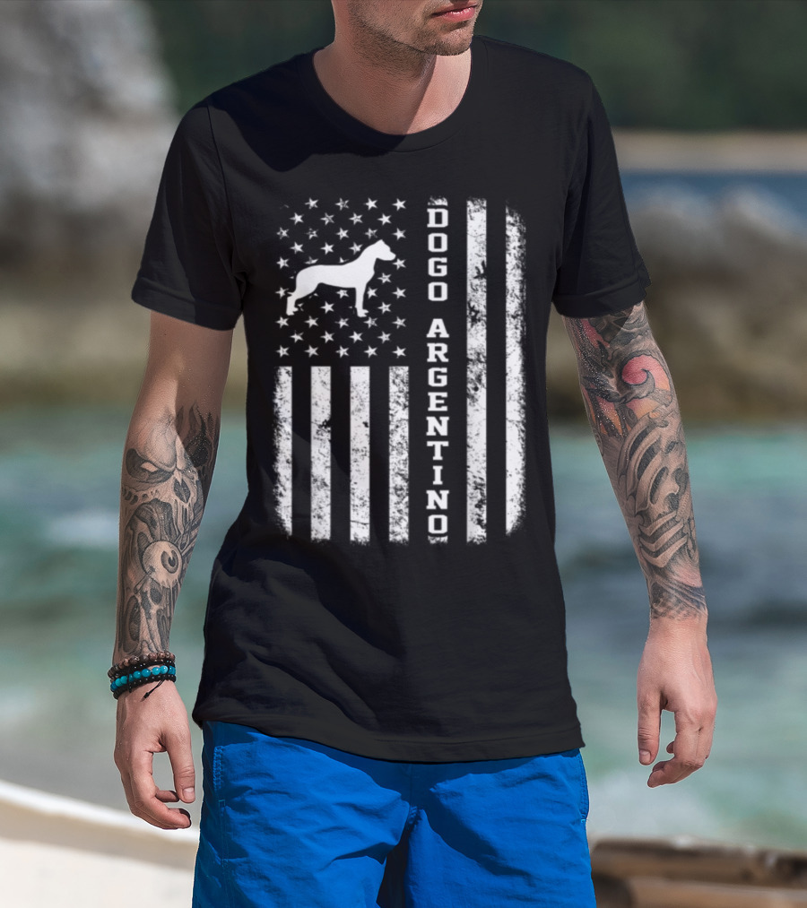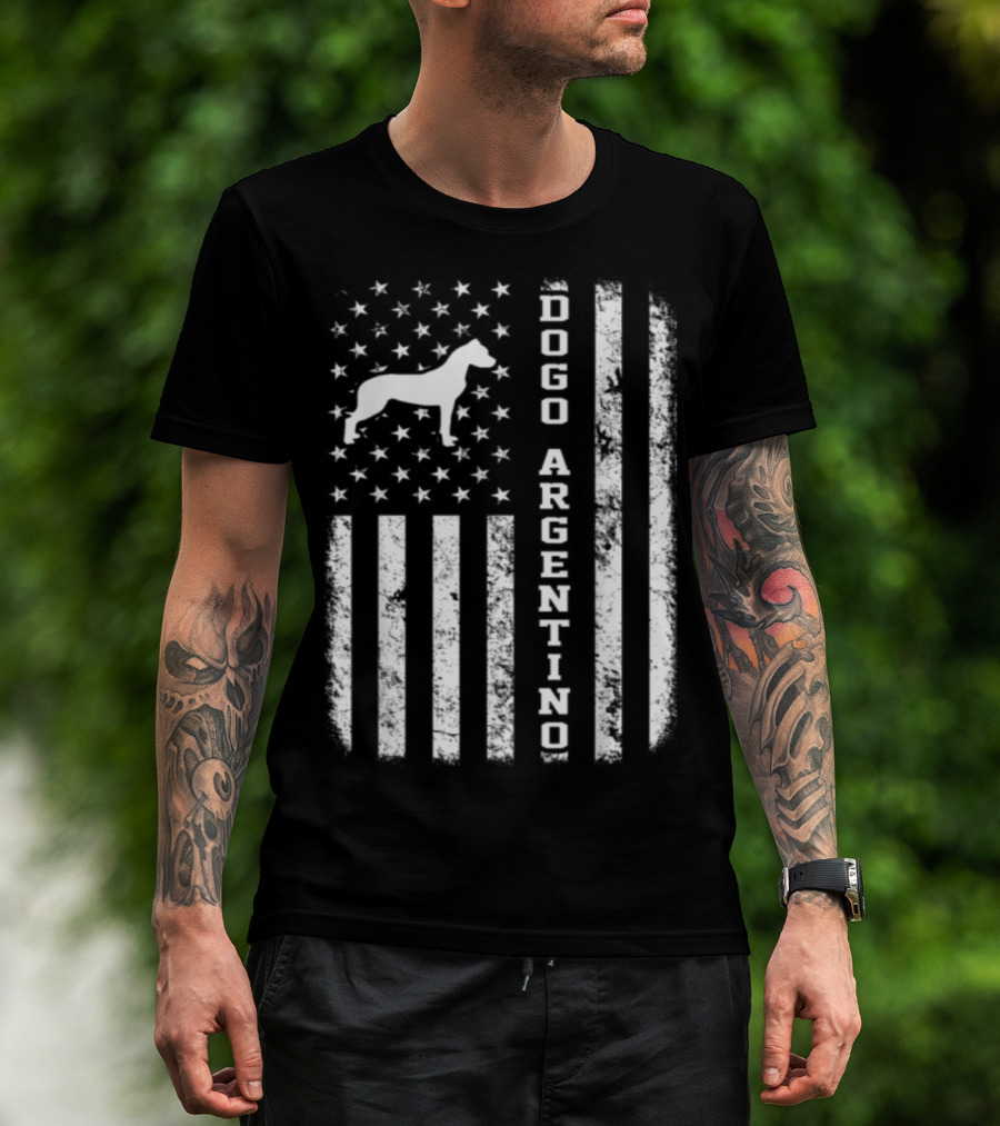 The Vintage American Flag Dogo Argentino Dog T-shirt is designed for everyday wear and a consistent fit. Fabric is pre-shrunk ring-spun cotton with durable stitching. See the size chart below for exact measurements.