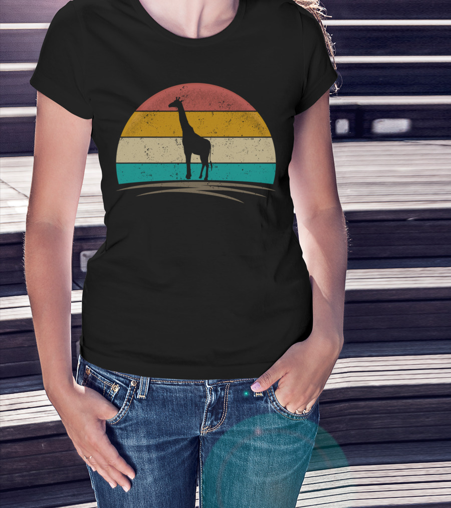 Vintage Giraffe Distressed Sunset Silhouette Giraffe Stripe Retro T-Shirt
