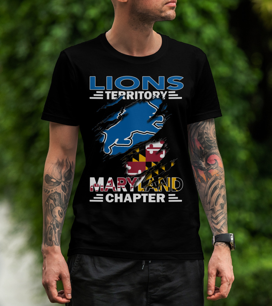 Lions Territory Maryland Chapter Blue Outline With Maryland Flag Elements T-Shirt