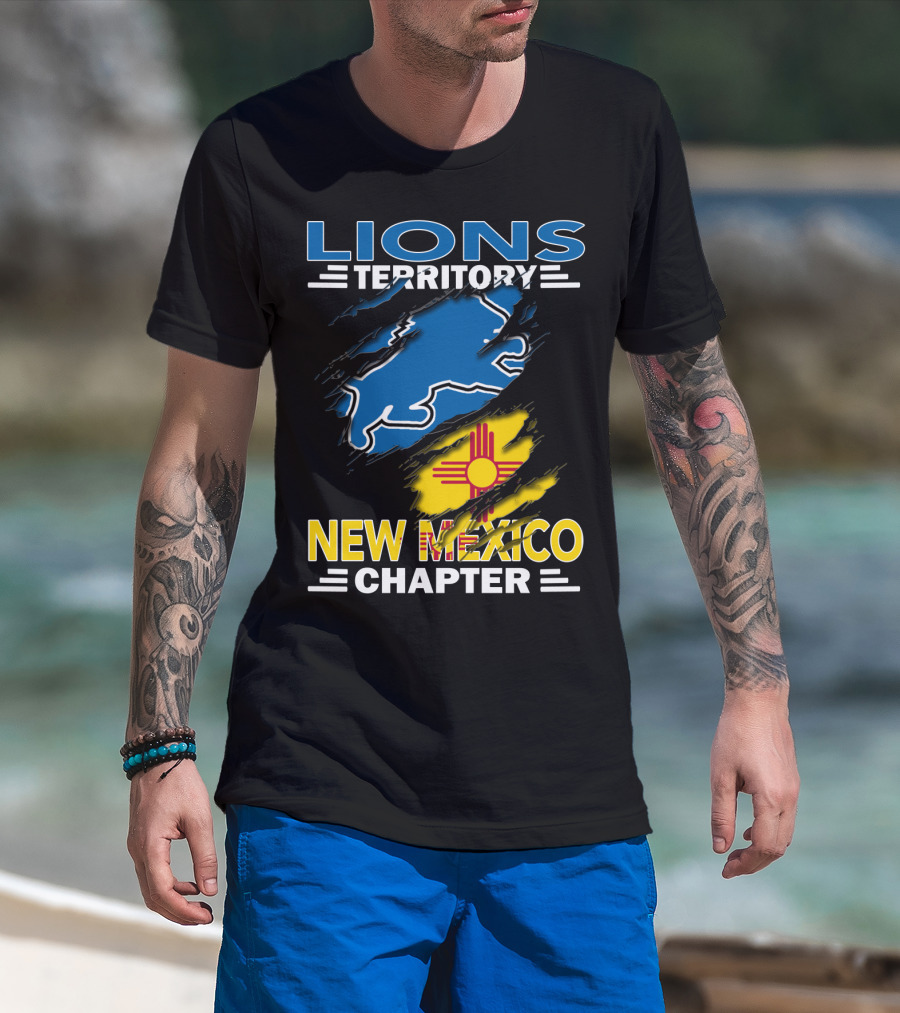 Lions Territory New Mexico Chapter Zia Symbol Blue Lion T-Shirt
