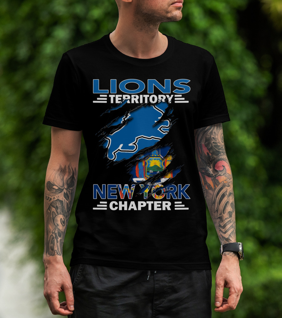 Lions Territory New York Chapter Blue Lion Silhouette Flag T-Shirt