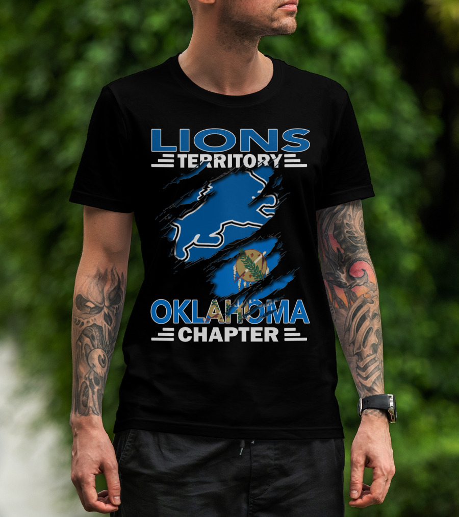 Lions Territory Oklahoma Chapter Blue Lion Oklahoma Flag Emblem T-Shirt