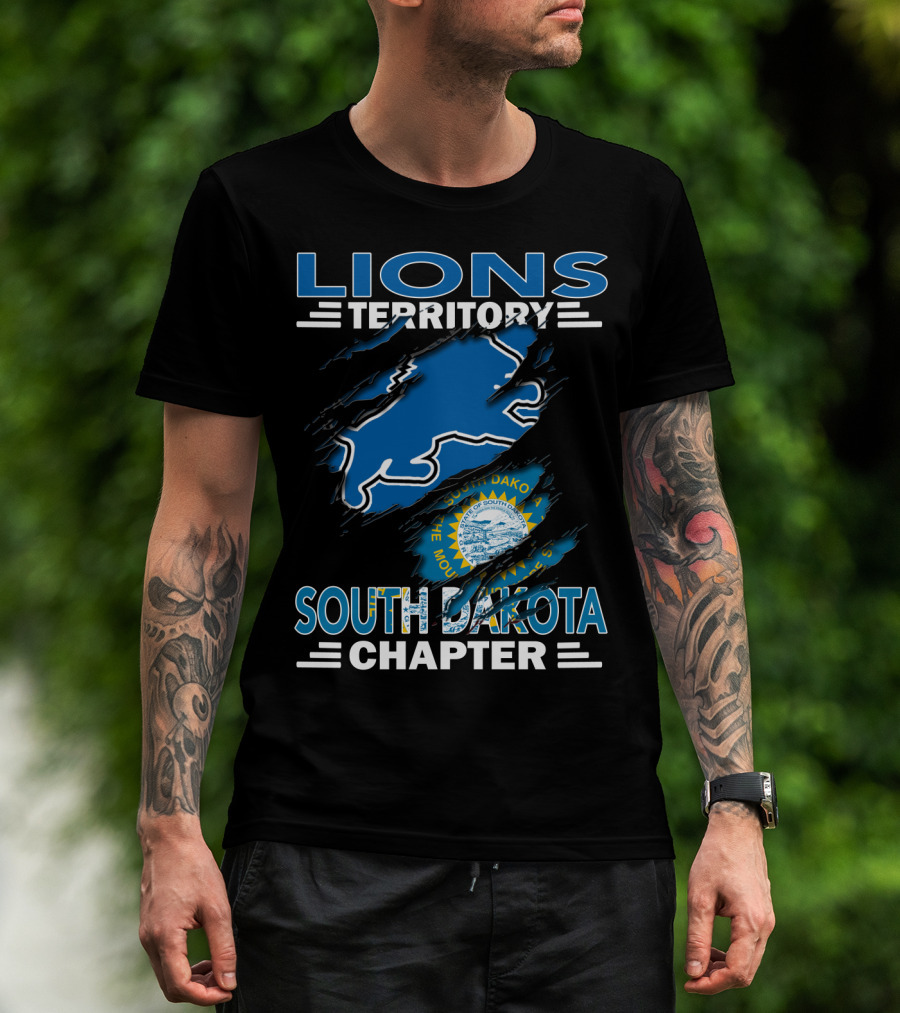 Lions Territory South Dakota Chapter State Emblem And Blue Lion T-Shirt