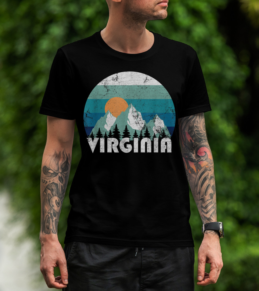 The Virginia Mountains Sunset T-shirt is designed for everyday wear and a consistent fit. Fabric is pre-shrunk ring-spun cotton with durable stitching. See the size chart below for exact measurements.