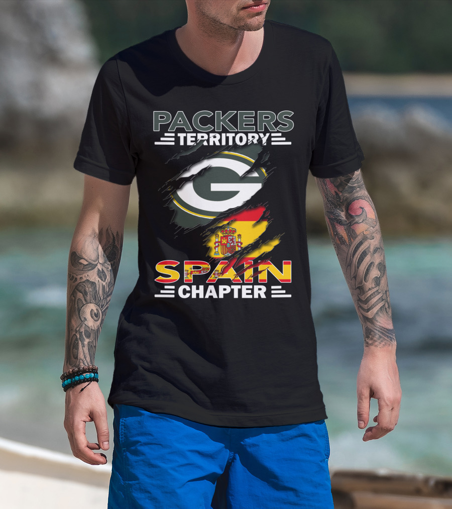 Packers Territory Spain Chapter Green Bay Logo With Spanish Flag T-Shirt