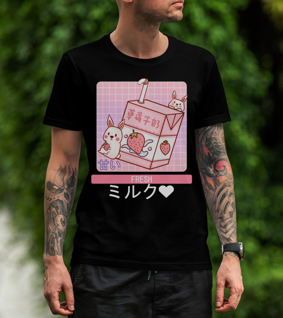 The Fresh Strawberry Milk Carton with Cute Bunny Aesthetic T-shirt is designed for everyday wear and a consistent fit. Fabric is pre-shrunk ring-spun cotton with durable stitching. See the size chart below for exact measurements.