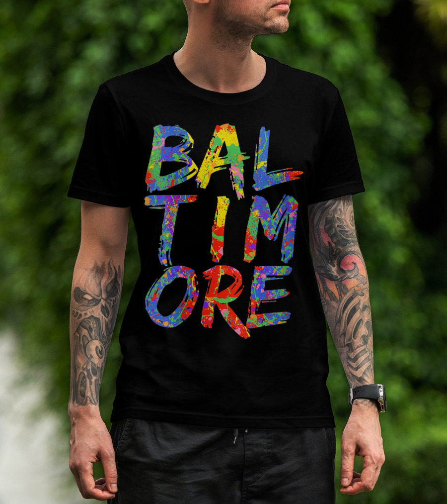 Baltimore Colorful Rainbow Paint Splash Effect T-Shirt