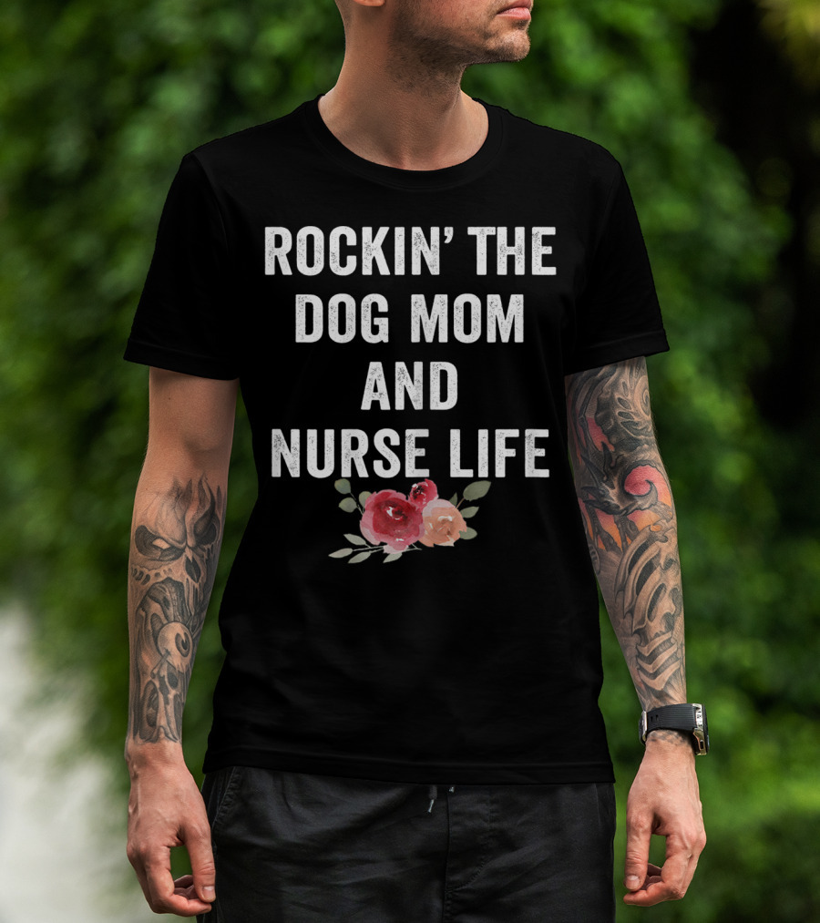 Rockin' The Dog Mom And Nurse Life Floral T-Shirt