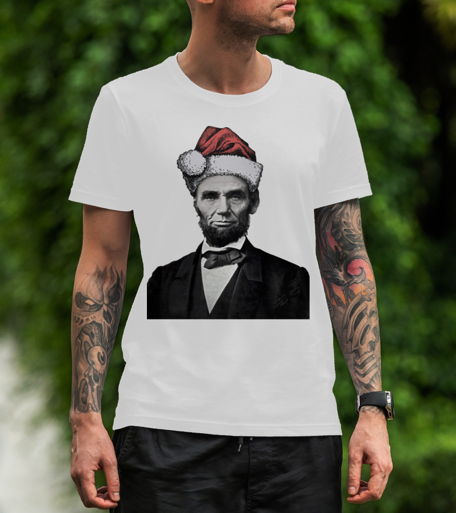 The Abraham Lincoln Santa Hat T-shirt is designed for everyday wear and a consistent fit. Fabric is pre-shrunk ring-spun cotton with durable stitching. See the size chart below for exact measurements.