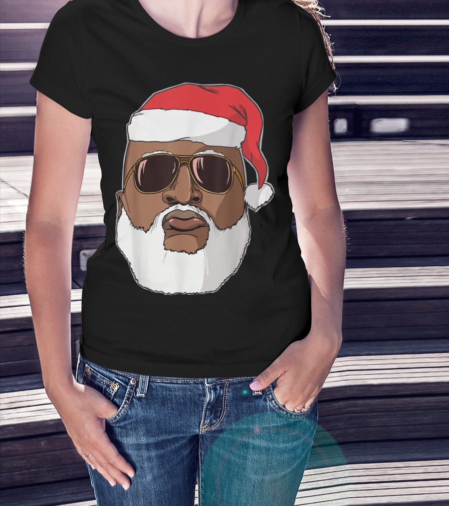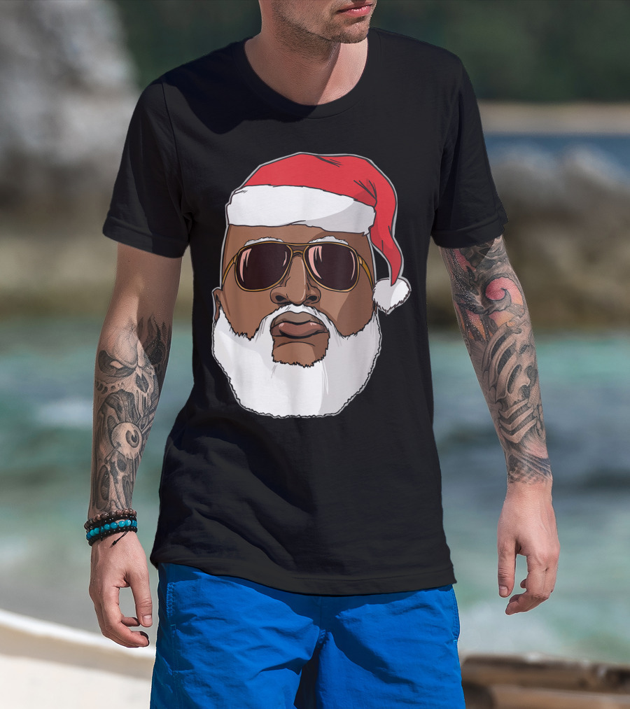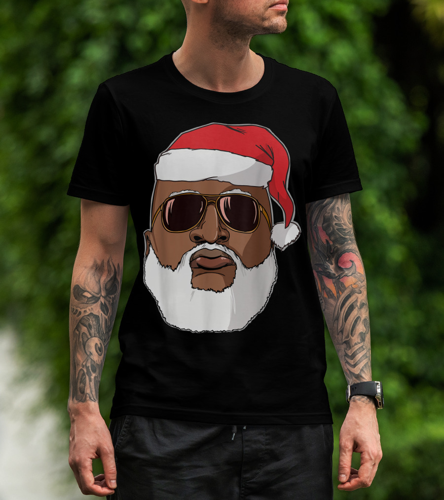 African American Santa With Sunglasses And Santa Hat T-Shirt