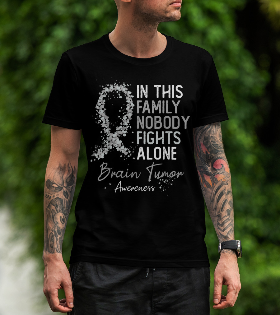In This Family Nobody Fights Alone Brain Tumor Awareness T-Shirt