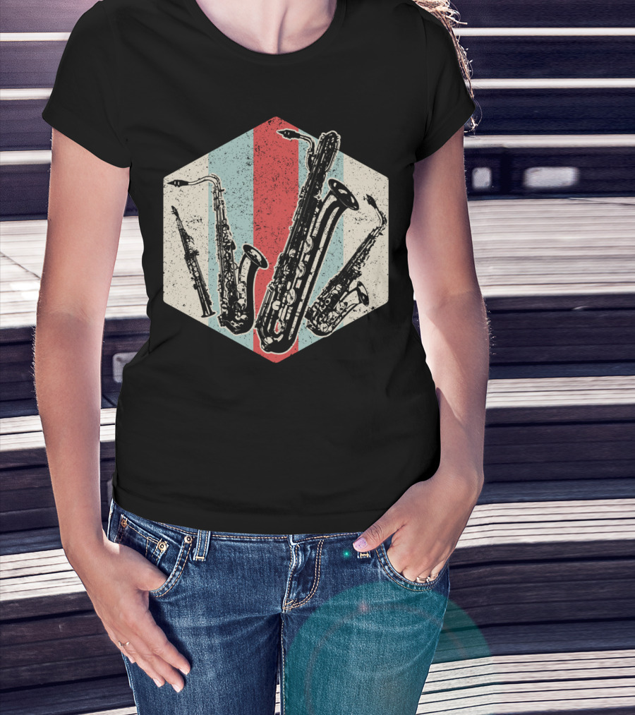 Alto Tenor Soprano Baritone Saxophone Sax Retro Hexagon T-Shirt