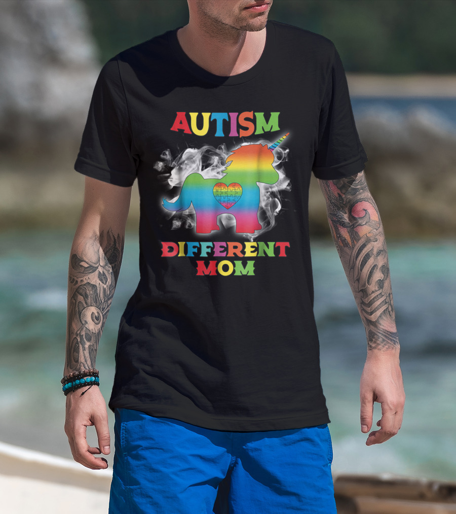 Autism Different Mom Rainbow Puzzle Heart Unicorn T-Shirt