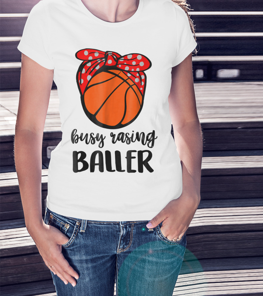 Busy Raising Baller Basketball Bandana Bow T-Shirt