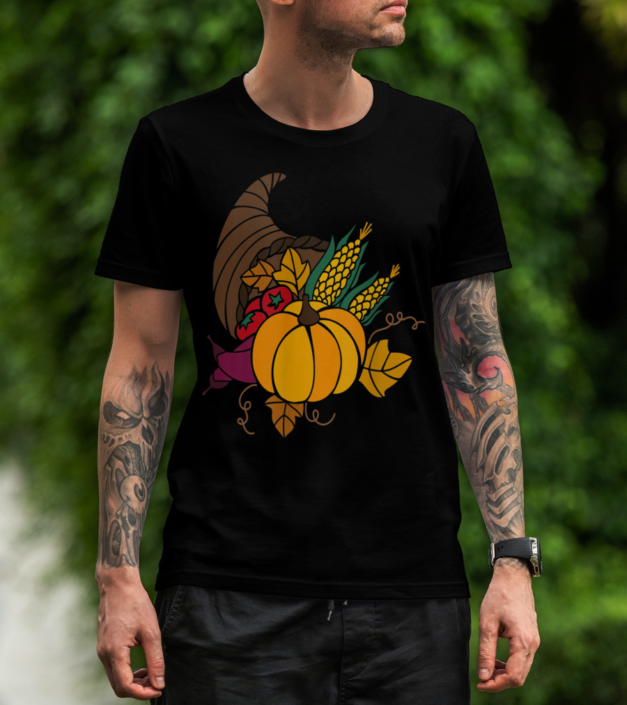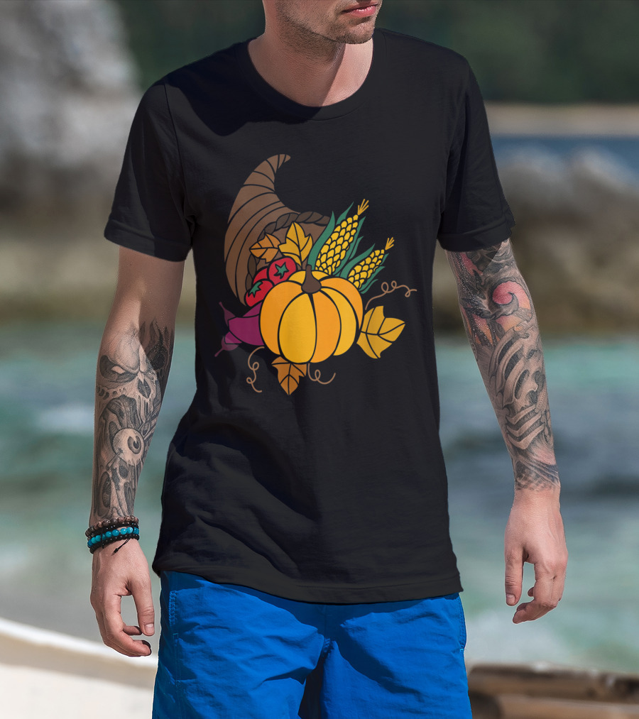 Cornucopia Autumn Harvest Thanksgiving Pumpkin Teacher Mom43 T-Shirt