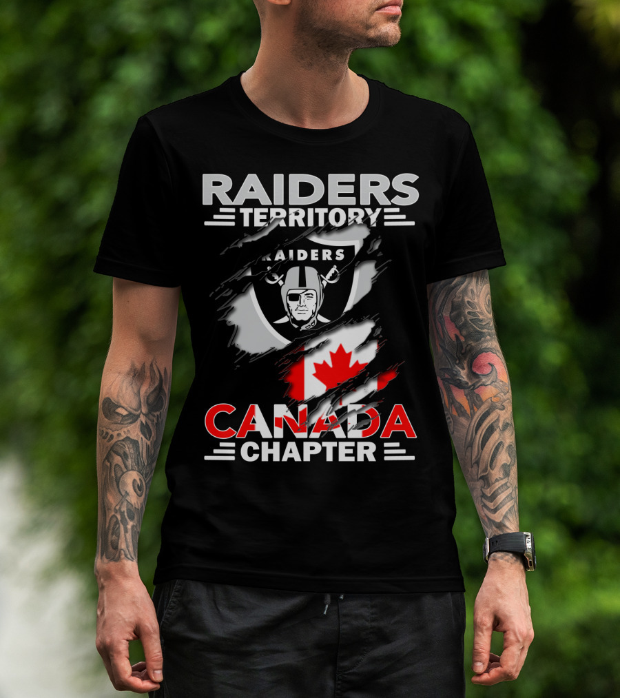 Raiders Territory Canada Chapter Raiders Flag Logo Canadian Flag T-Shirt