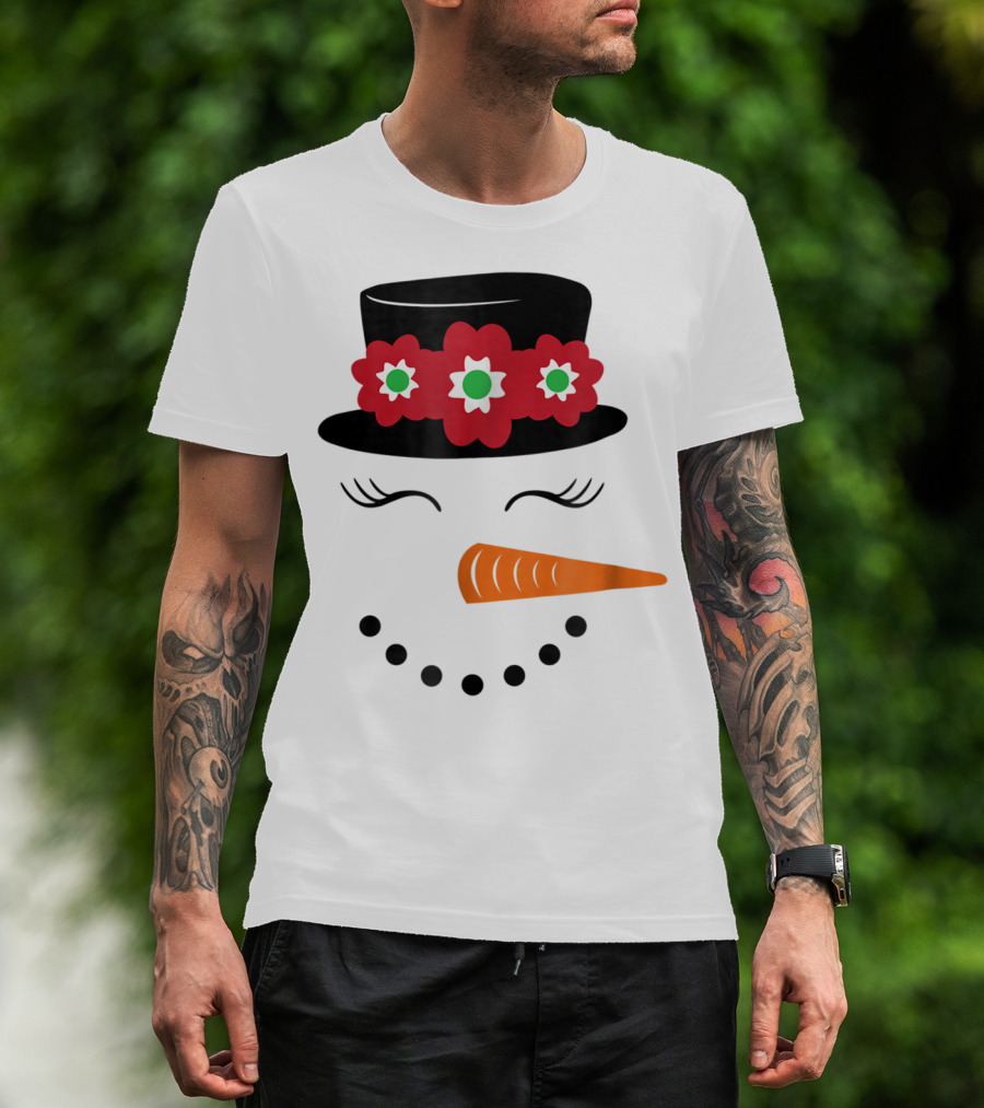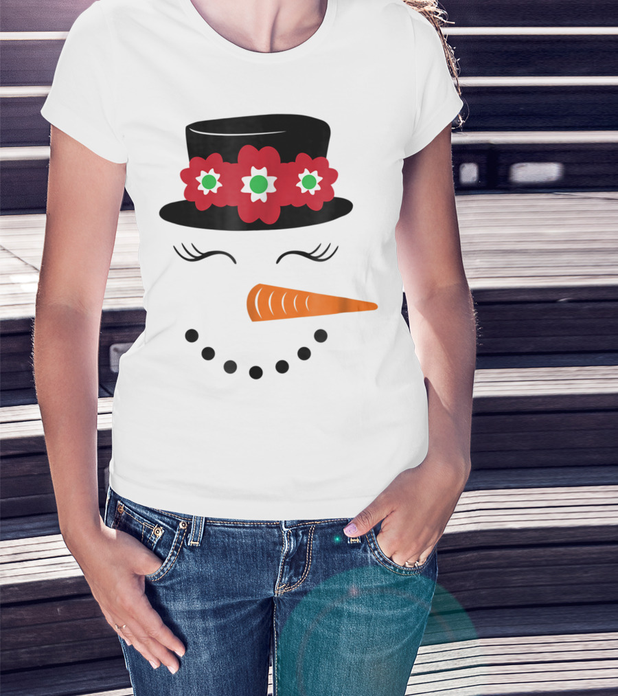 Family Christmas Card Snowman Woman With Hat And Flowers Mom Girl25 T-Shirt