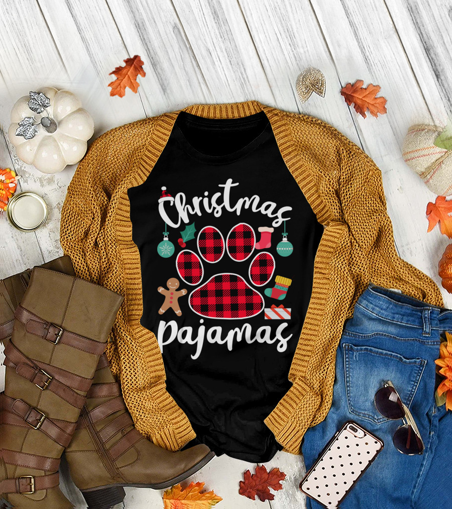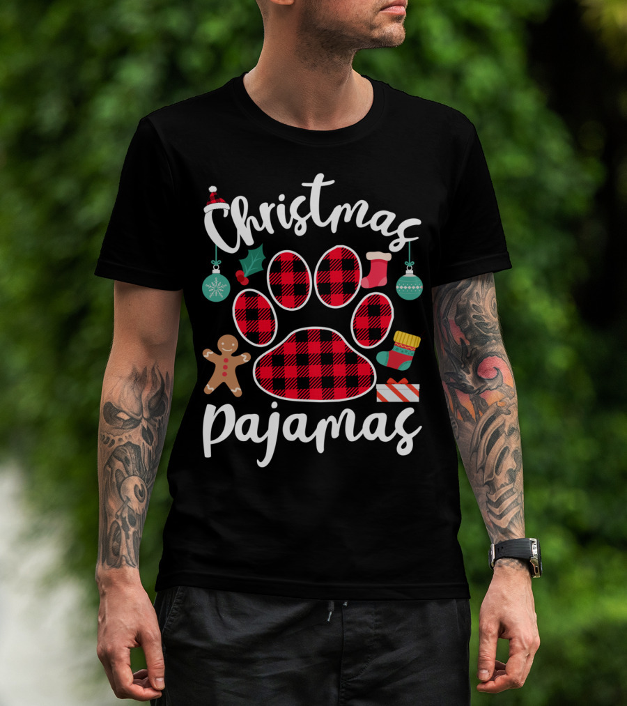 Buffalo Plaid Paw Print Christmas Pajamas Holiday T-Shirt